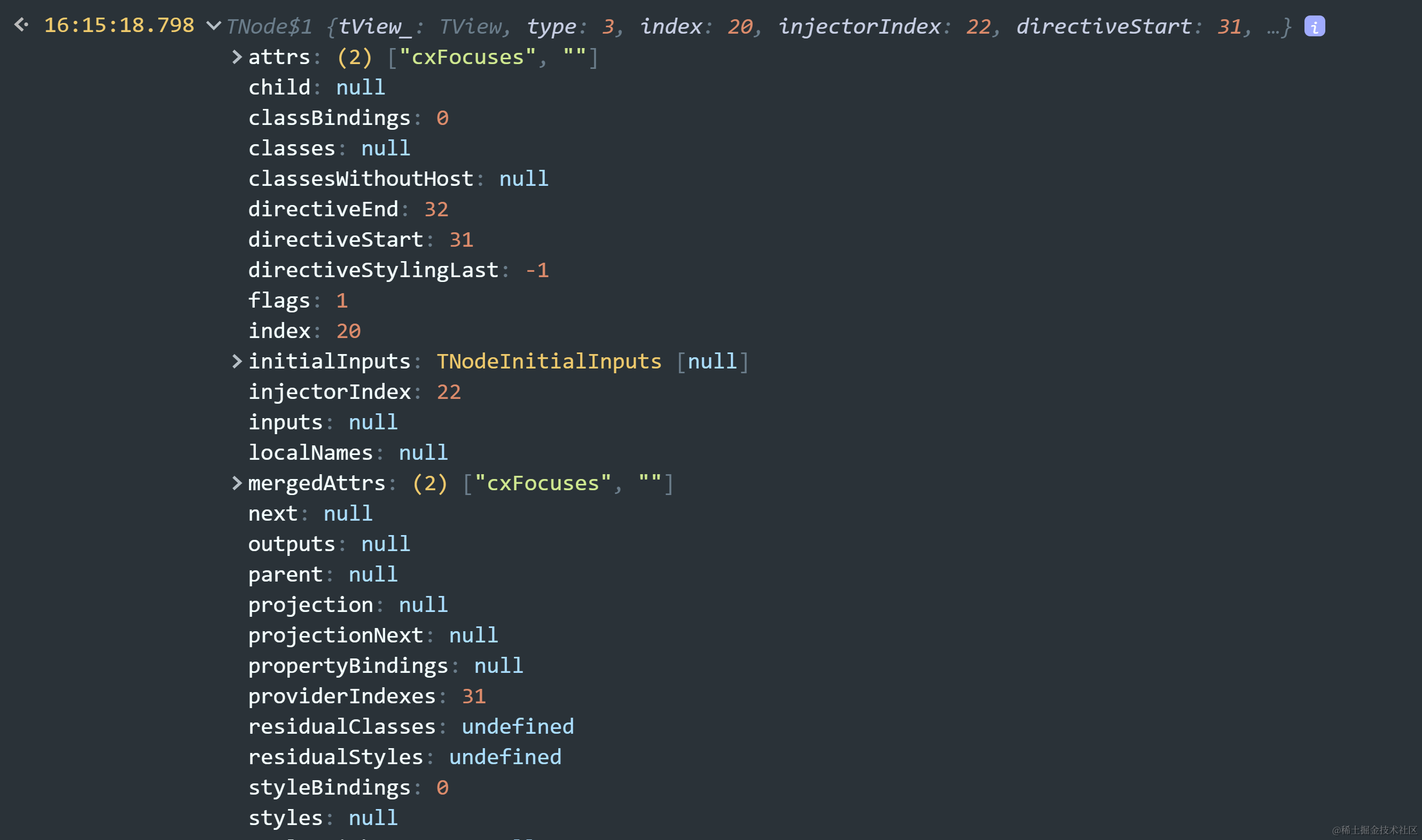 这个tNode结构应该是Angular运行时根据Angular编译器处理TypeScript文件而生成的结果。
