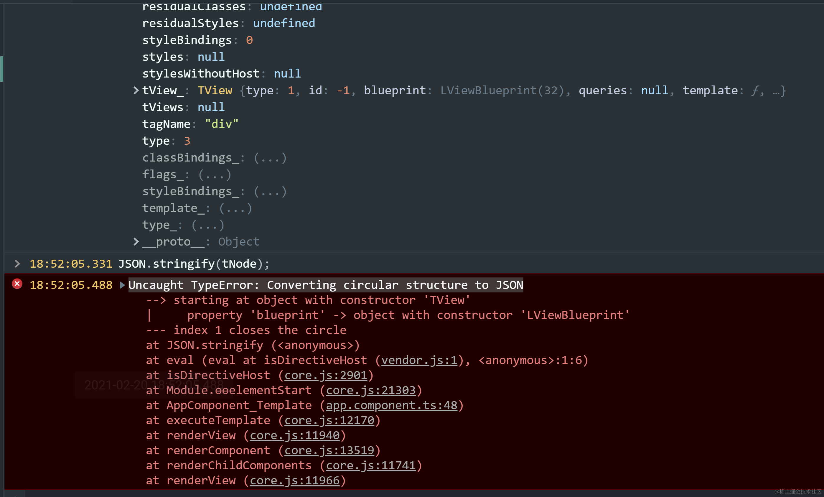 VM415:1 Uncaught TypeError: Converting circular structure to JSON