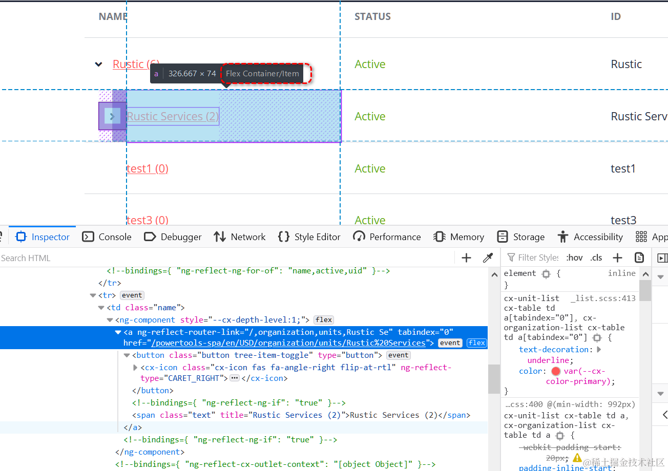 使用flex布局的元素,在HTML里能看到flex的小图标,如下图所示: