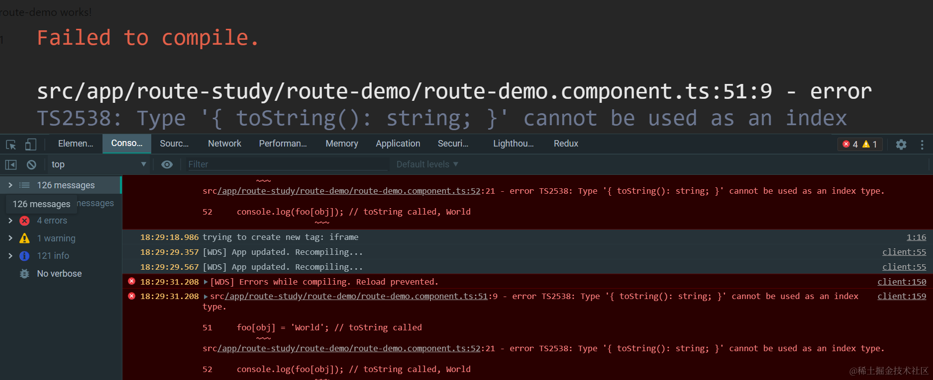 而在TypeScript里,无法通过编译:TS2538: Type ‘{ toString(): string; }’ cannot be used as an index type.