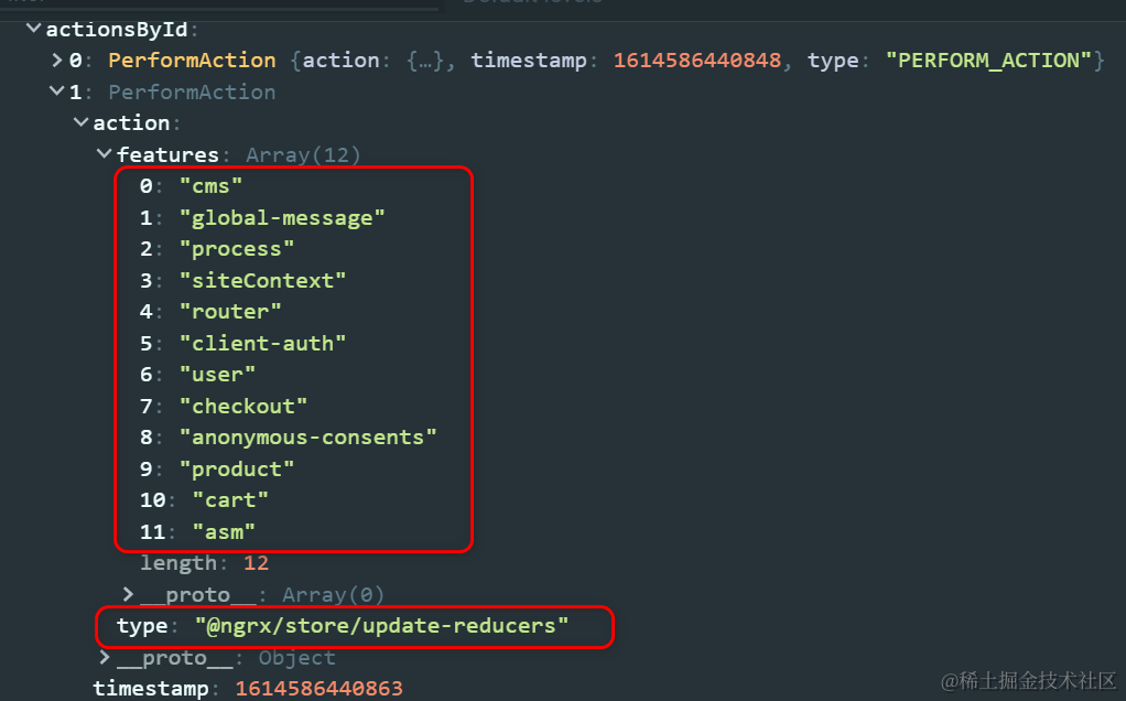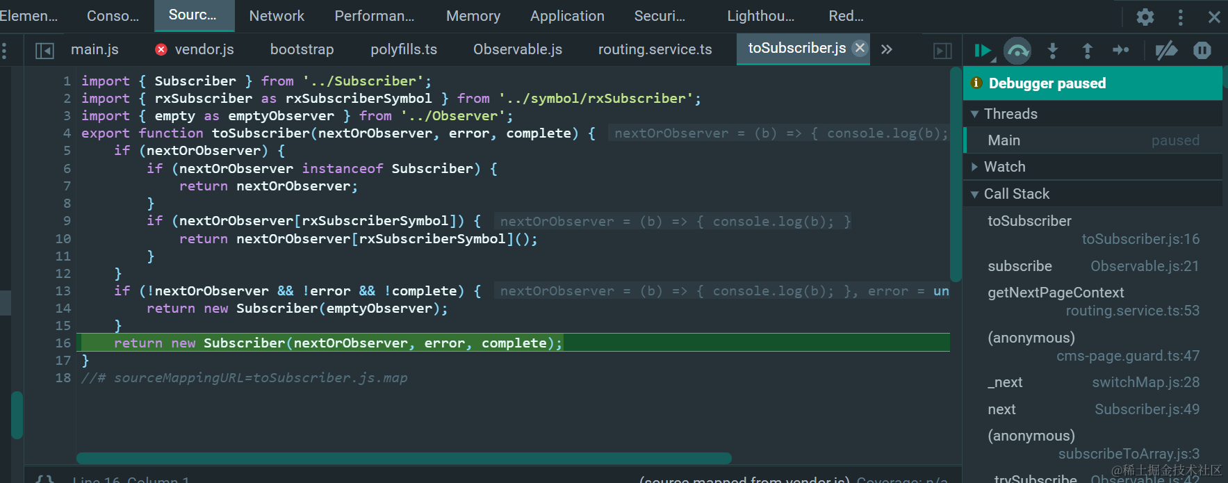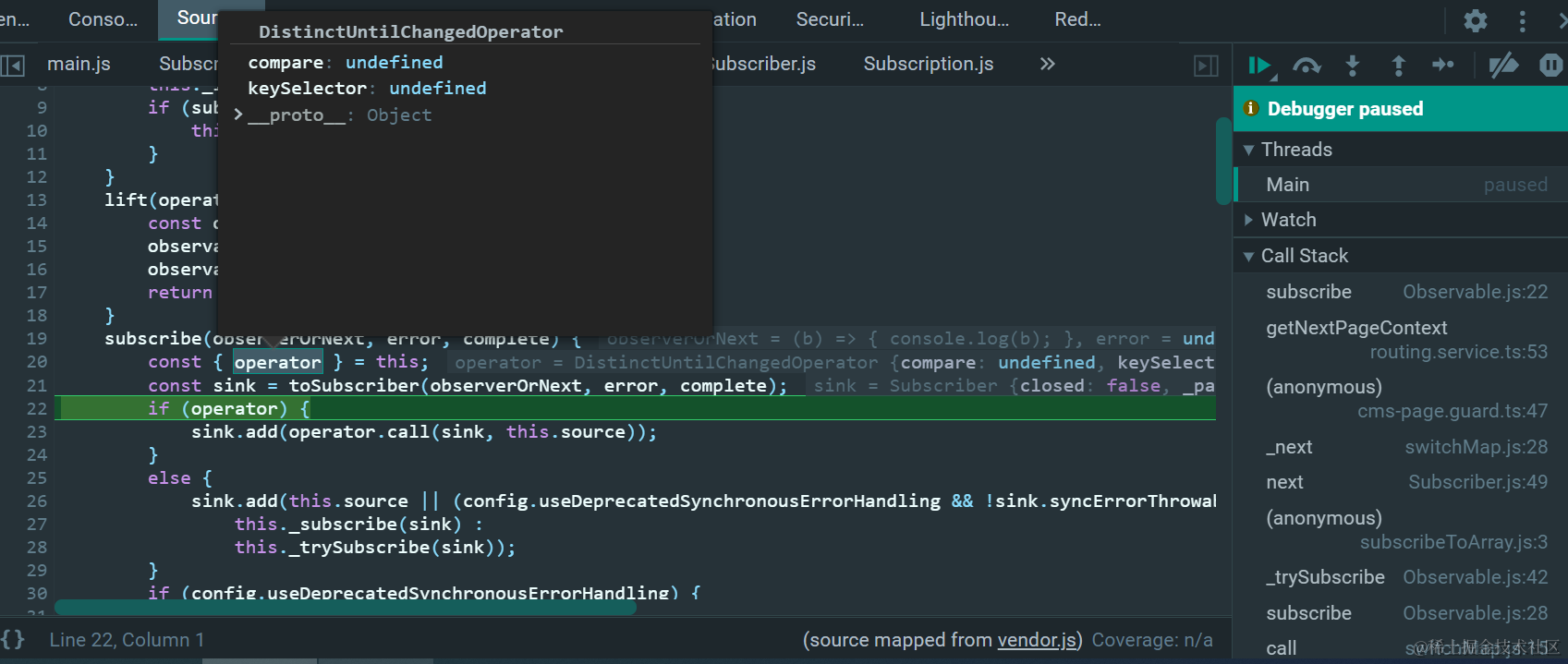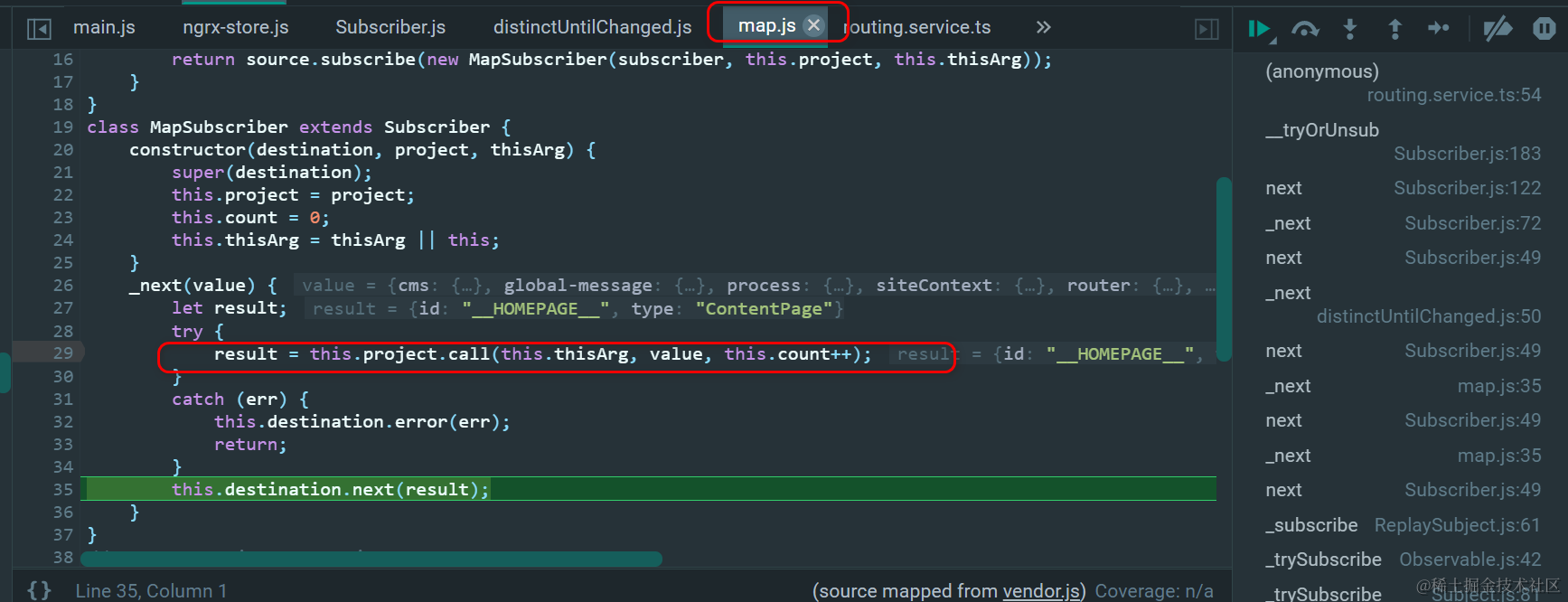 执行到53行时,再切换到ngrx-store.js里,设置断点: