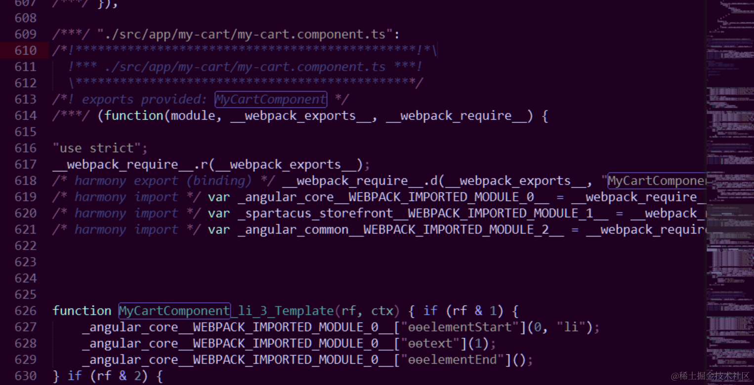 默认情况下,我们在Angular应用里编写的所有Component,会被ng build打包到一个main chunk里。比如我开发了一个MyCartComponent: