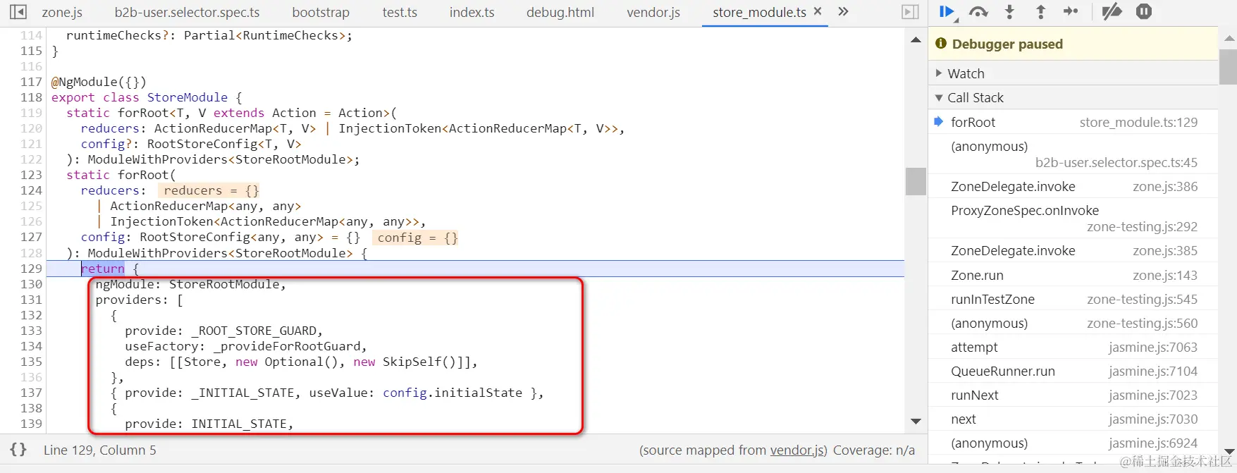 StoreModule.forRoot返回一个组装好的NgModule结构: