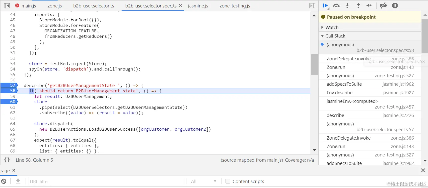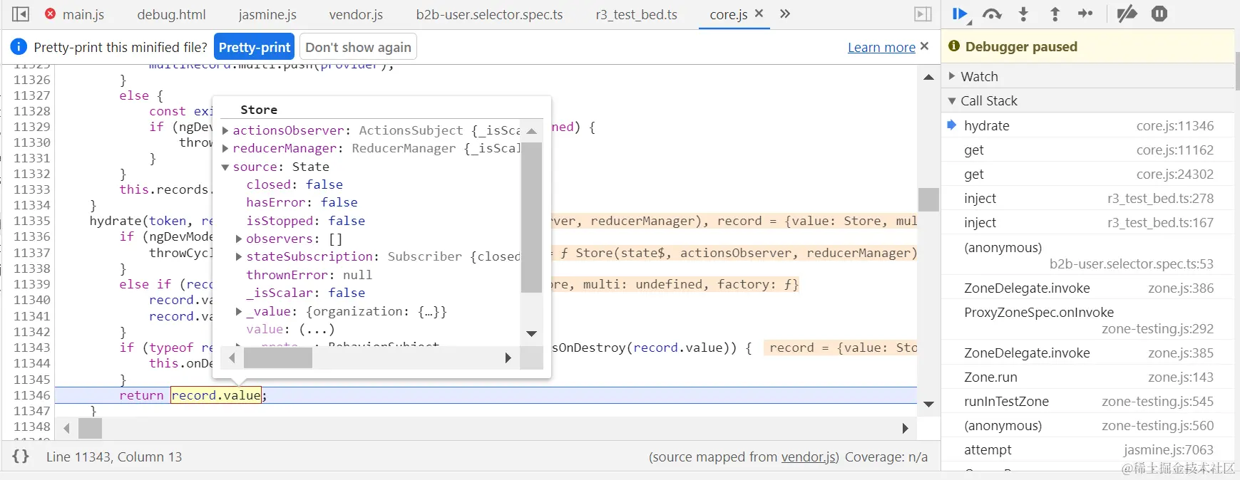 store实例通过TestBed.inject注入好之后,在其私有字段_value里,立即能看到里面处于initial状态的state:
