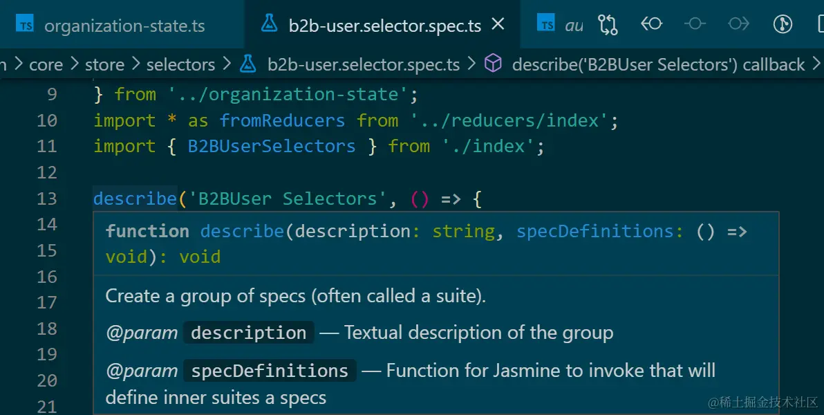 describe: 定义一个test spec group,用来包裹多个specs,也称为suite: