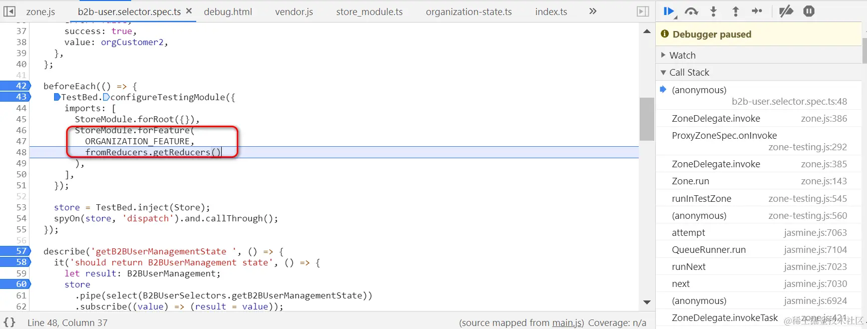 StoreModule.forFeature: 接受的输入参数为字符串feature和其他module export的getReducers: