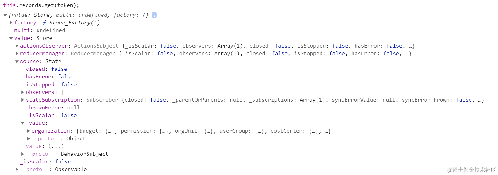 R3Injector实例里的records map的填充逻辑 已注销 2021-04-26 79 阅读1分钟 Angular 注入器 R3Injector, 有个字段records,是一个map,里面存放了注入好的依赖实例: 下面的代码可知,对象间的赋值操作,赋值的是对象引用: 从state$的_value里能看到原始值: 这个token, store, 其实就是从标准ngrx导入的Store module: 在get里进行hydrate: store可用的方法不多,最常用的就是select和pipe两个方法: 更多Jerry的原创文章,尽在:“汪子熙”: