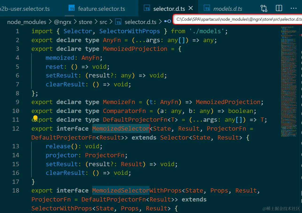export interface MemoizedSelector<State, Result, ProjectorFn =