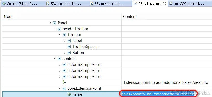 不过,Partners 仍然可以利用该 Fiori 应用 UI 上预留的 ExtensionPoint,即 salesAreaInfoTabContentBottomExtension,来自行将这两个字段添加到 Fiori UI 上: