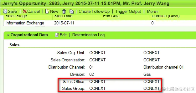 Sales Office 和 Sales Group 是 SAP CRM WebClient UI 上的标准字段: