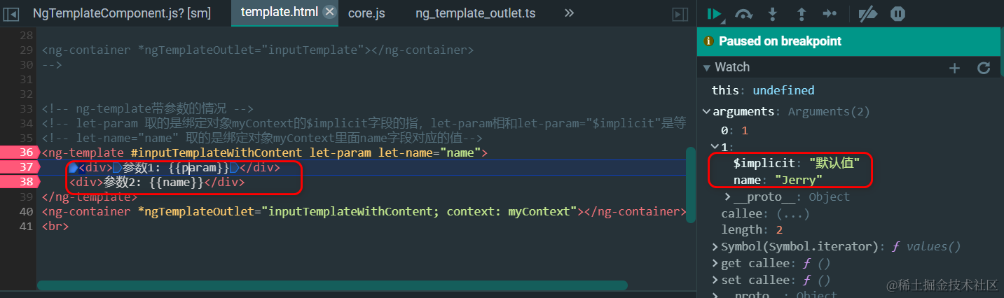 ng-template里面let-param param对应的是myContext对象里面$implicit属性的值(let-param和let-param=”implicit“是一样的意思).