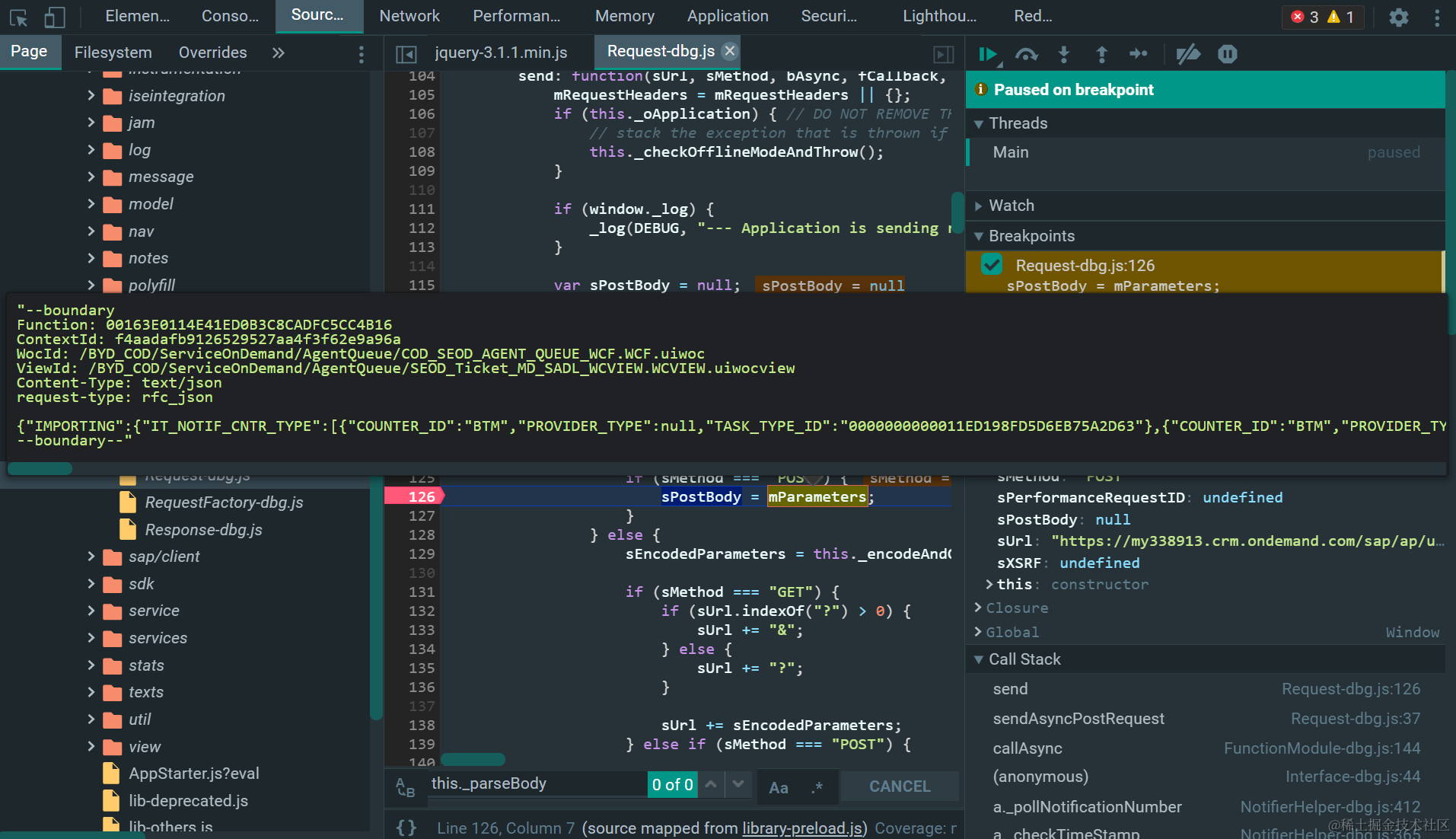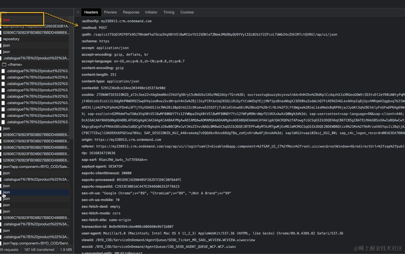 如果想仅仅查看该HTTP请求(json)向后台发送的具体数据内容,可以参考我这篇文章:如何在Chrome development tool里查看C4C前台发送的请求细节.