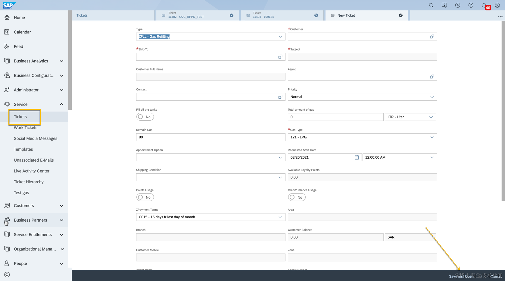 1,service - new ticket - Save and Open.
