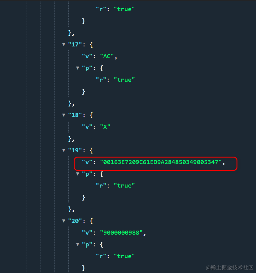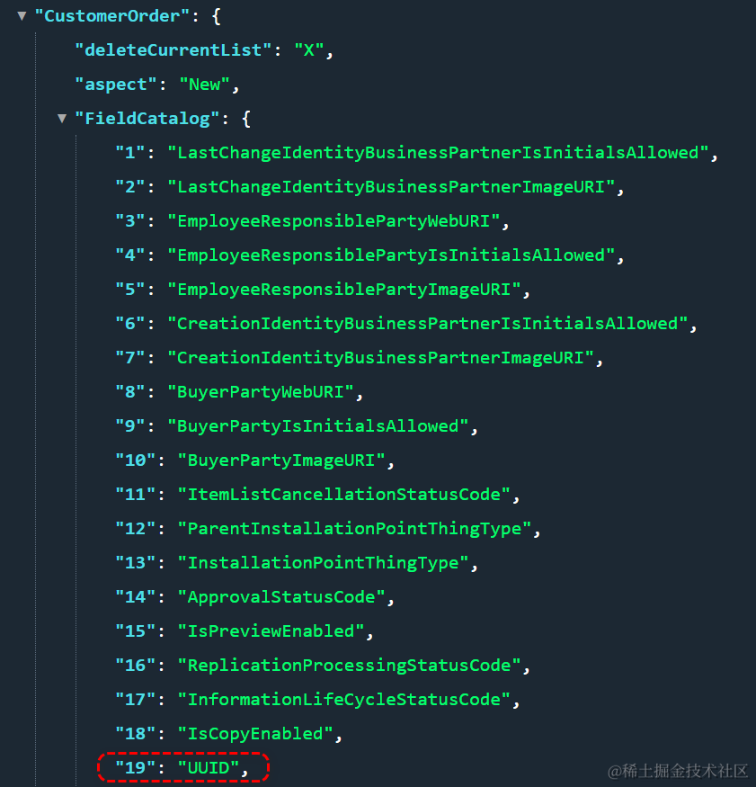 索引19代表的字段正是UUID,采取索引值的设计,避免了直接使用字段名来描述每条记录的key-value,减小了最后从后台传递到前台的json数据尺寸:
