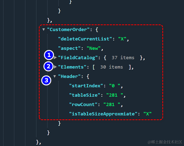 而json数据里的CustomerOrder,分为三部分: