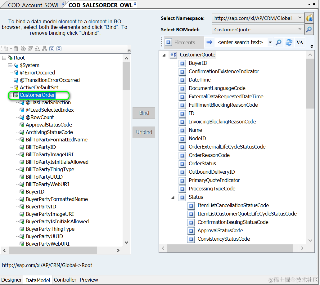 答案是SAP C4C UI模型的data model标签页里看到的数据结构: