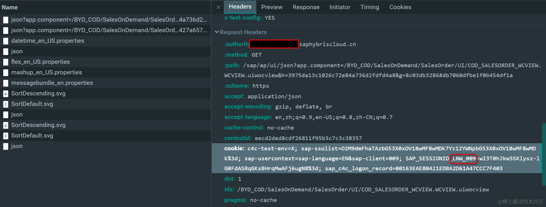 当前C4C客户所属的ABAP 服务器 SID,和client信息,在cookie里可以看到。下图的例子,SID和client ID,分别为LNW,009.