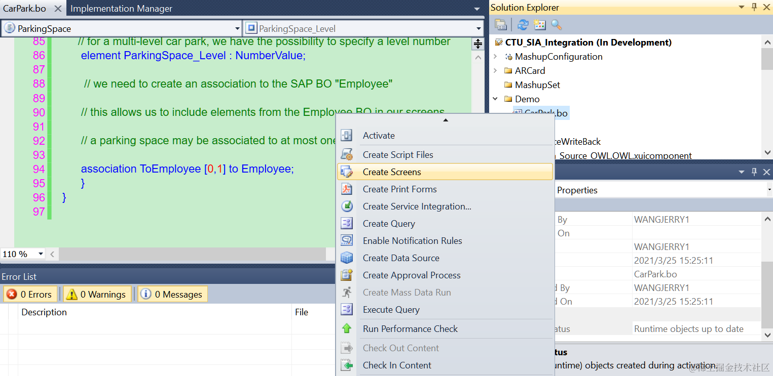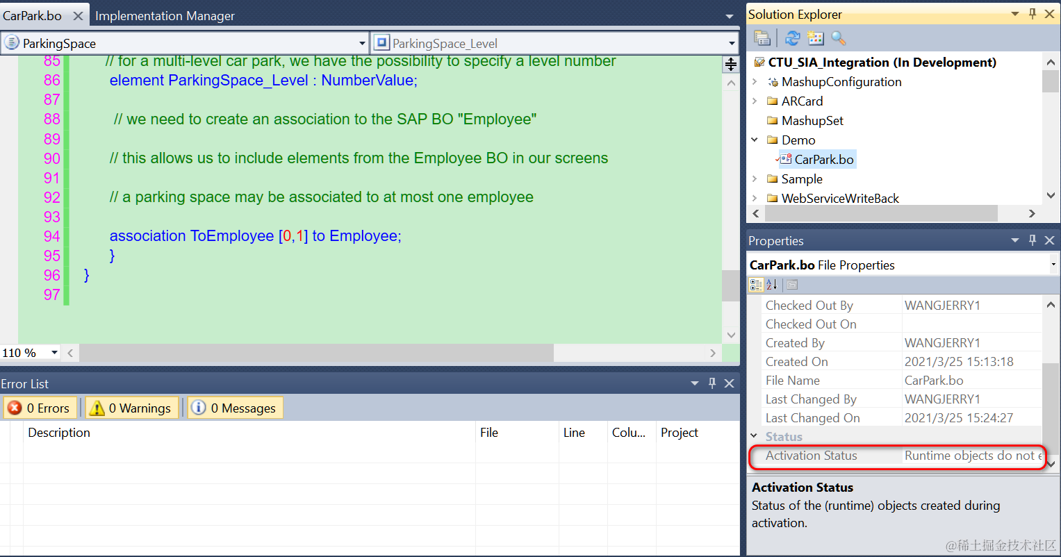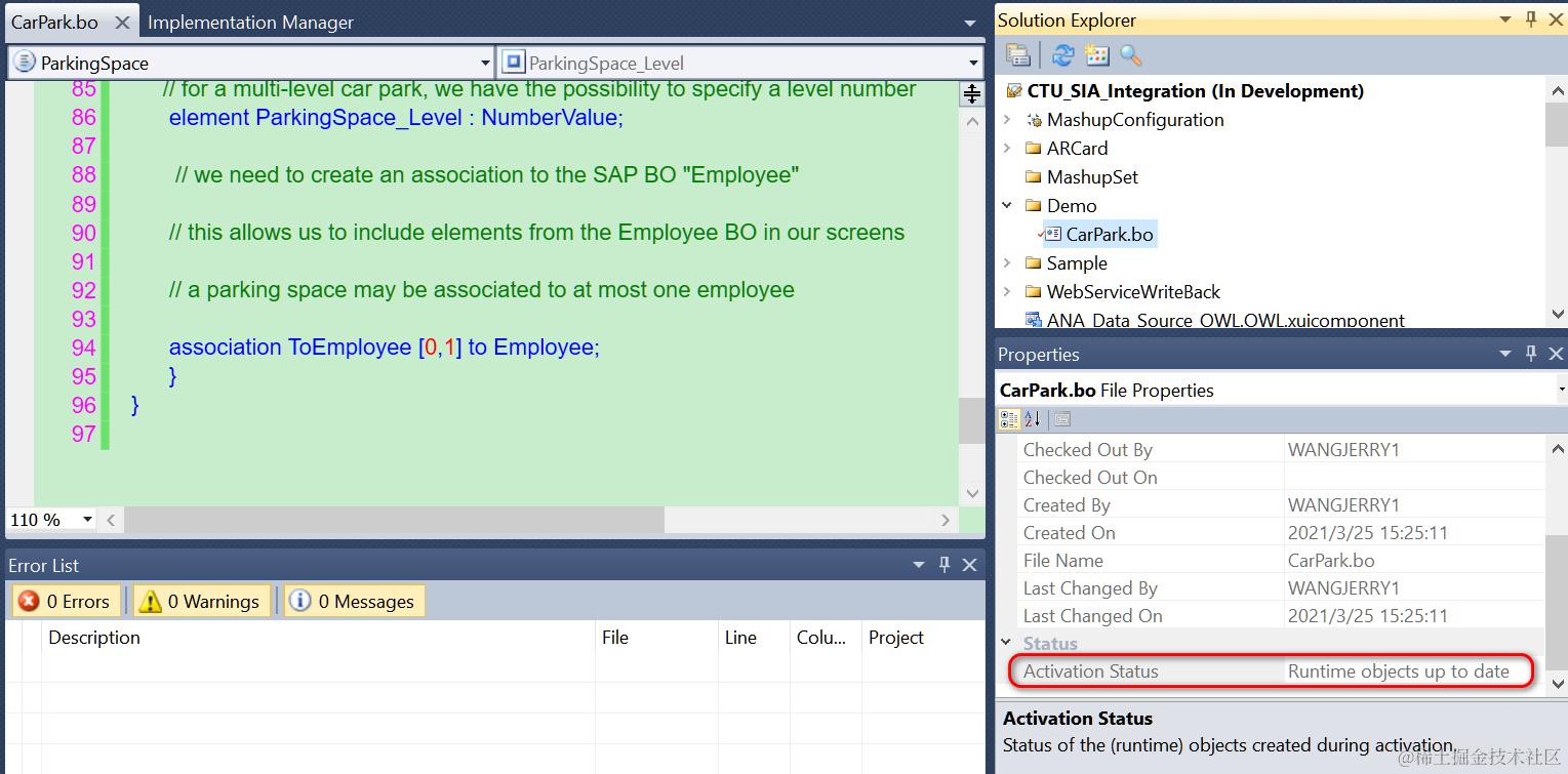 激活该BO,确保Activation Status为Runtime Objects up to date: