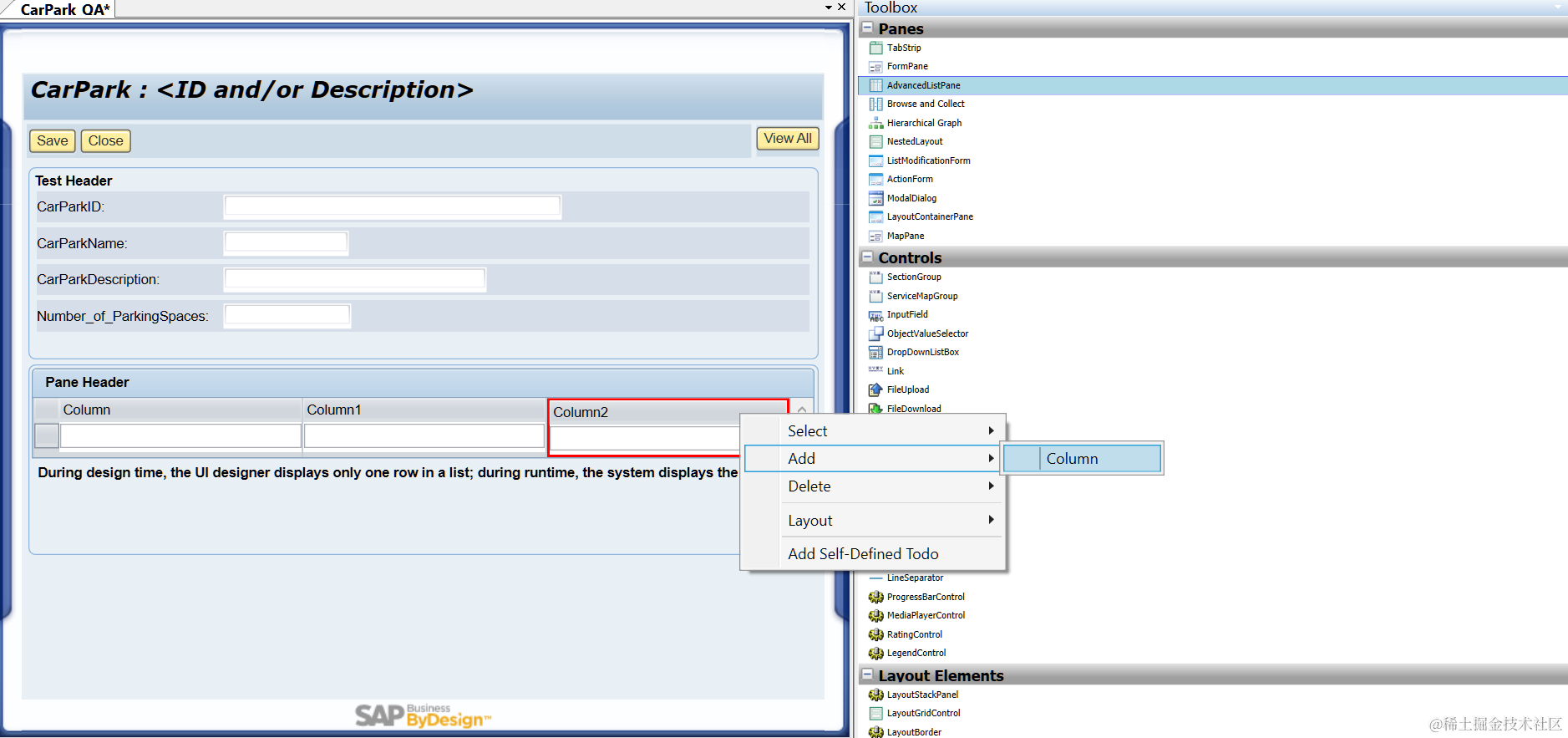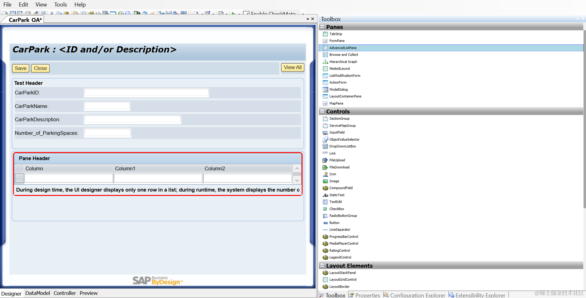 将Toolbox里的控件AdvancedListPane拖到新建的FlexLayoutRow里: