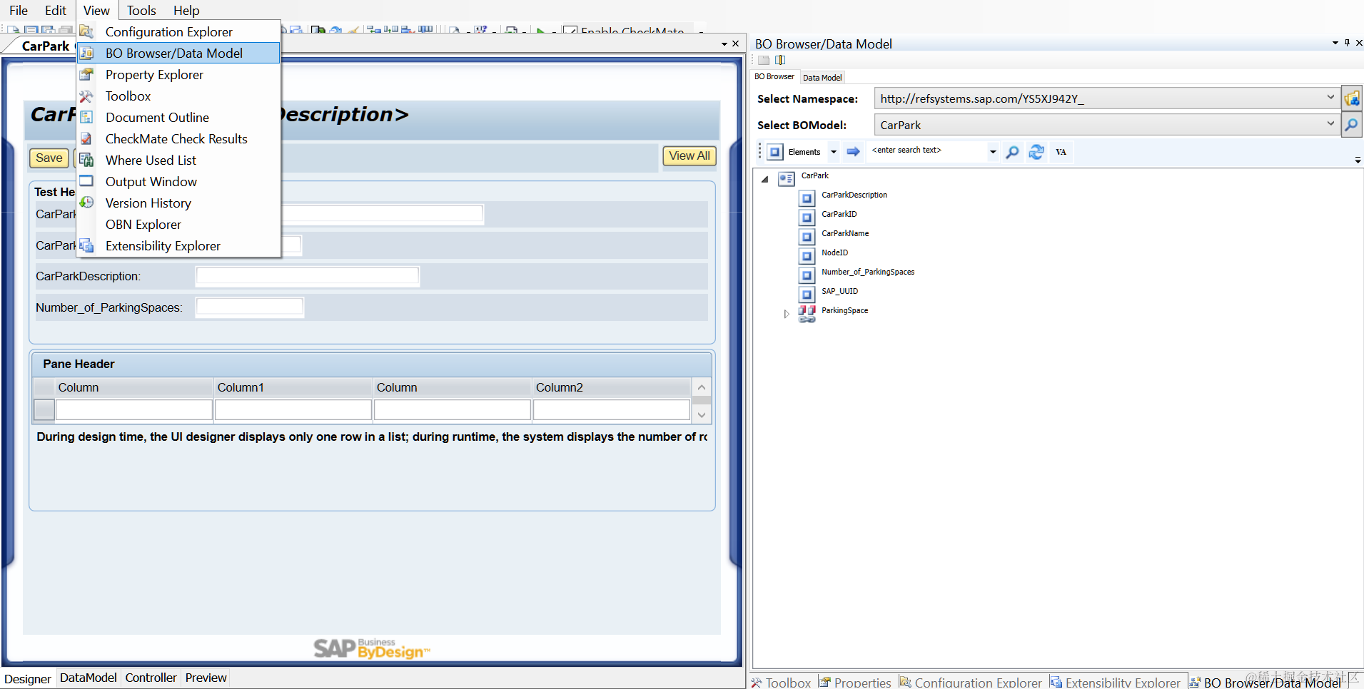 View菜单里打开:BO Browser / Data Model,使其显示在屏幕右边: