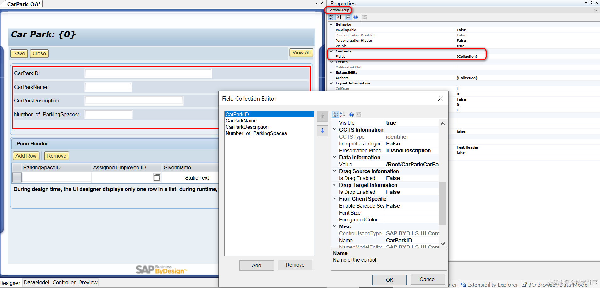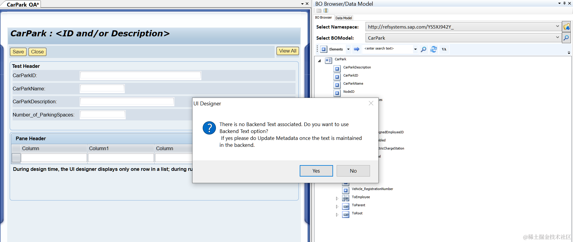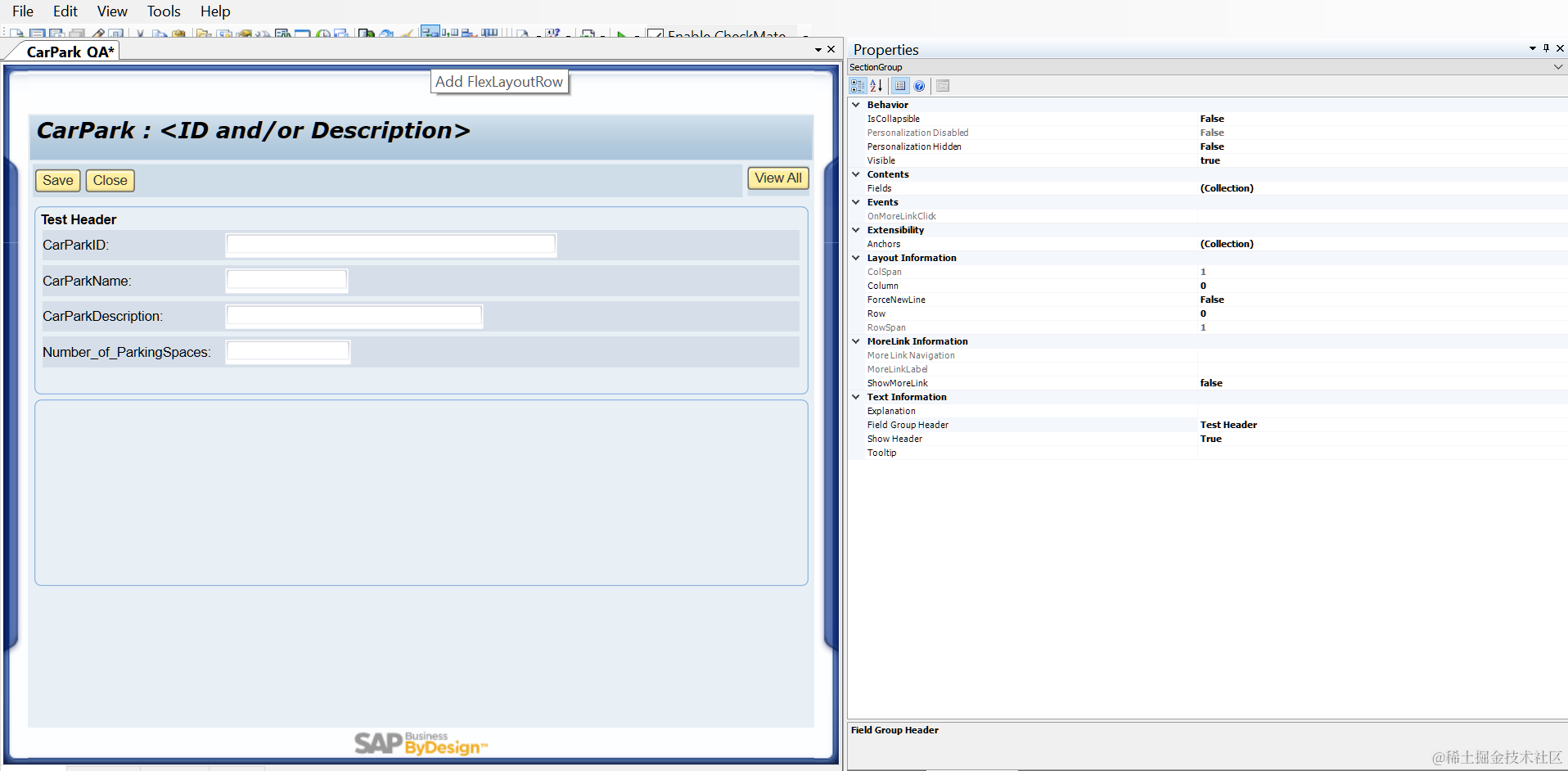 双击QA打开自动生成的UI,发现上面已经有一些来自BO抬头级别的字段了: