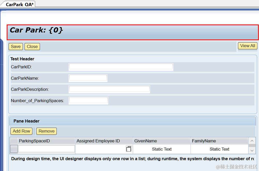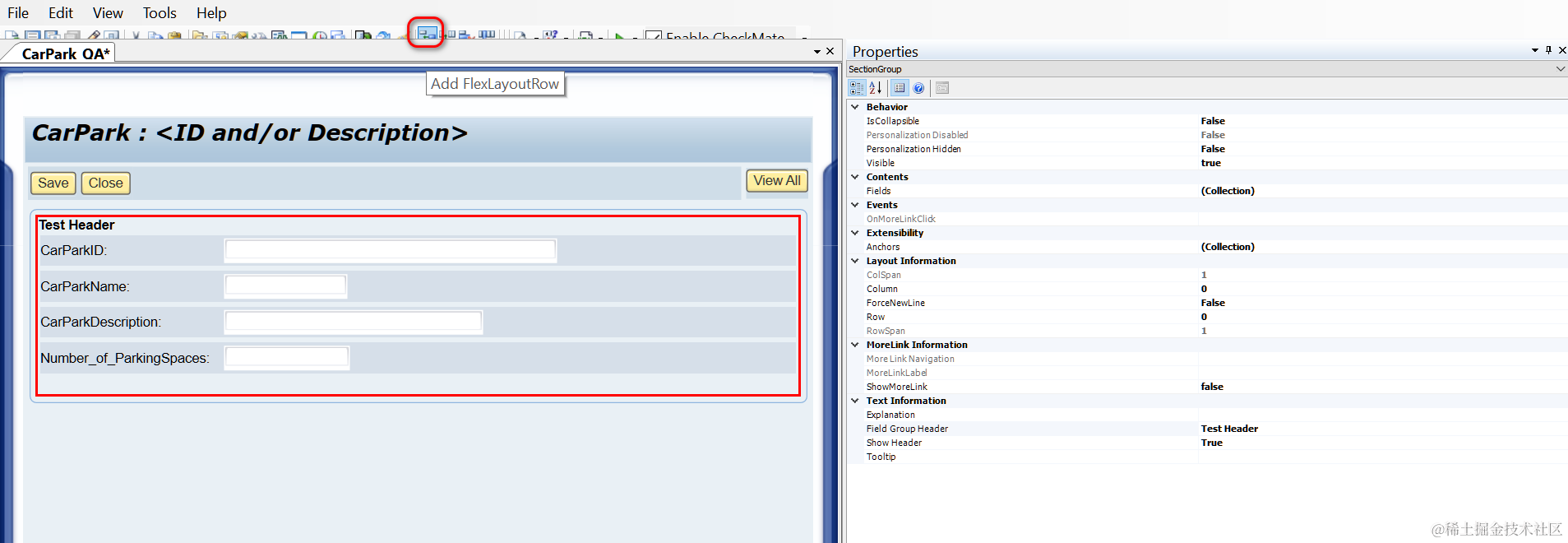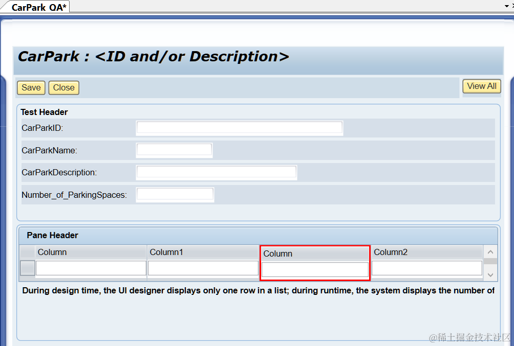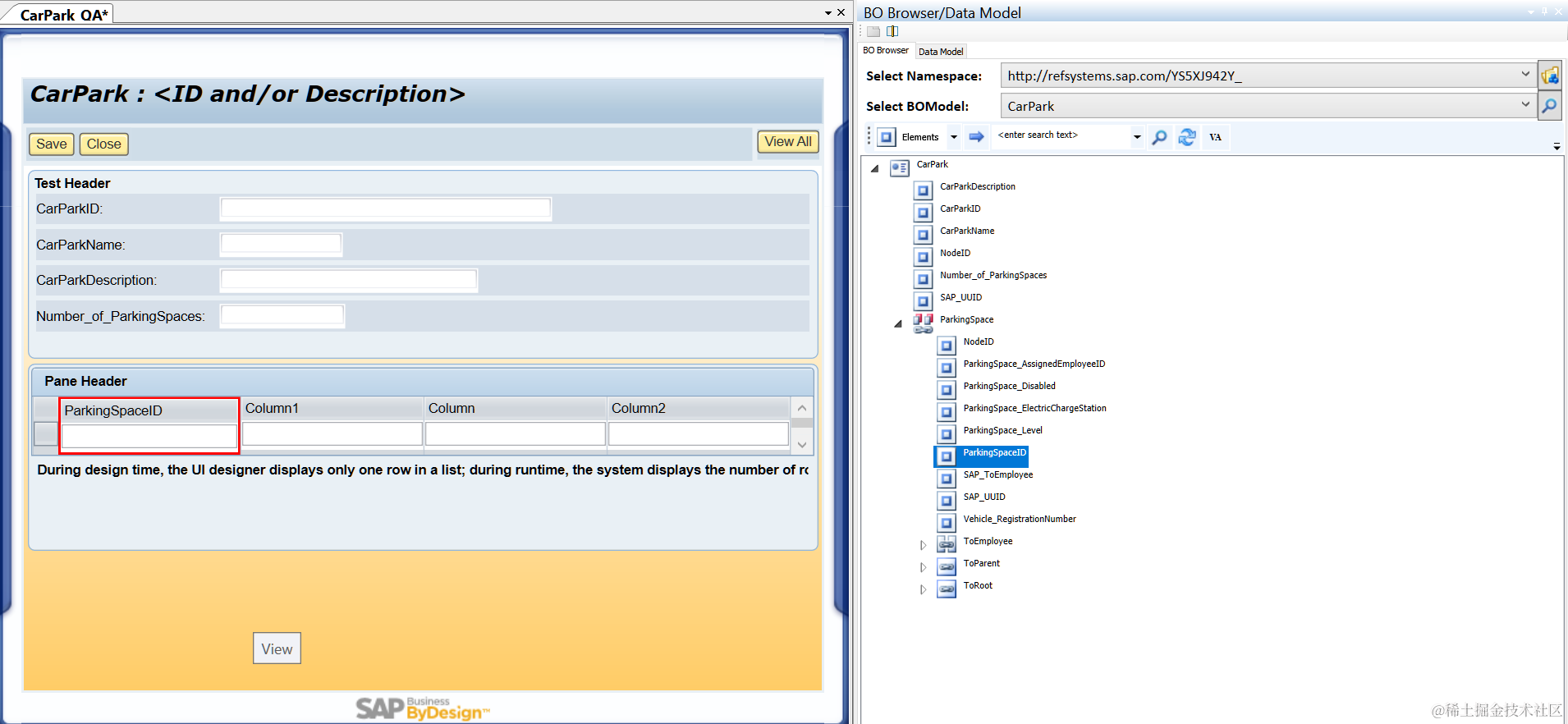 双击QA打开自动生成的UI,发现上面已经有一些来自BO抬头级别的字段了: