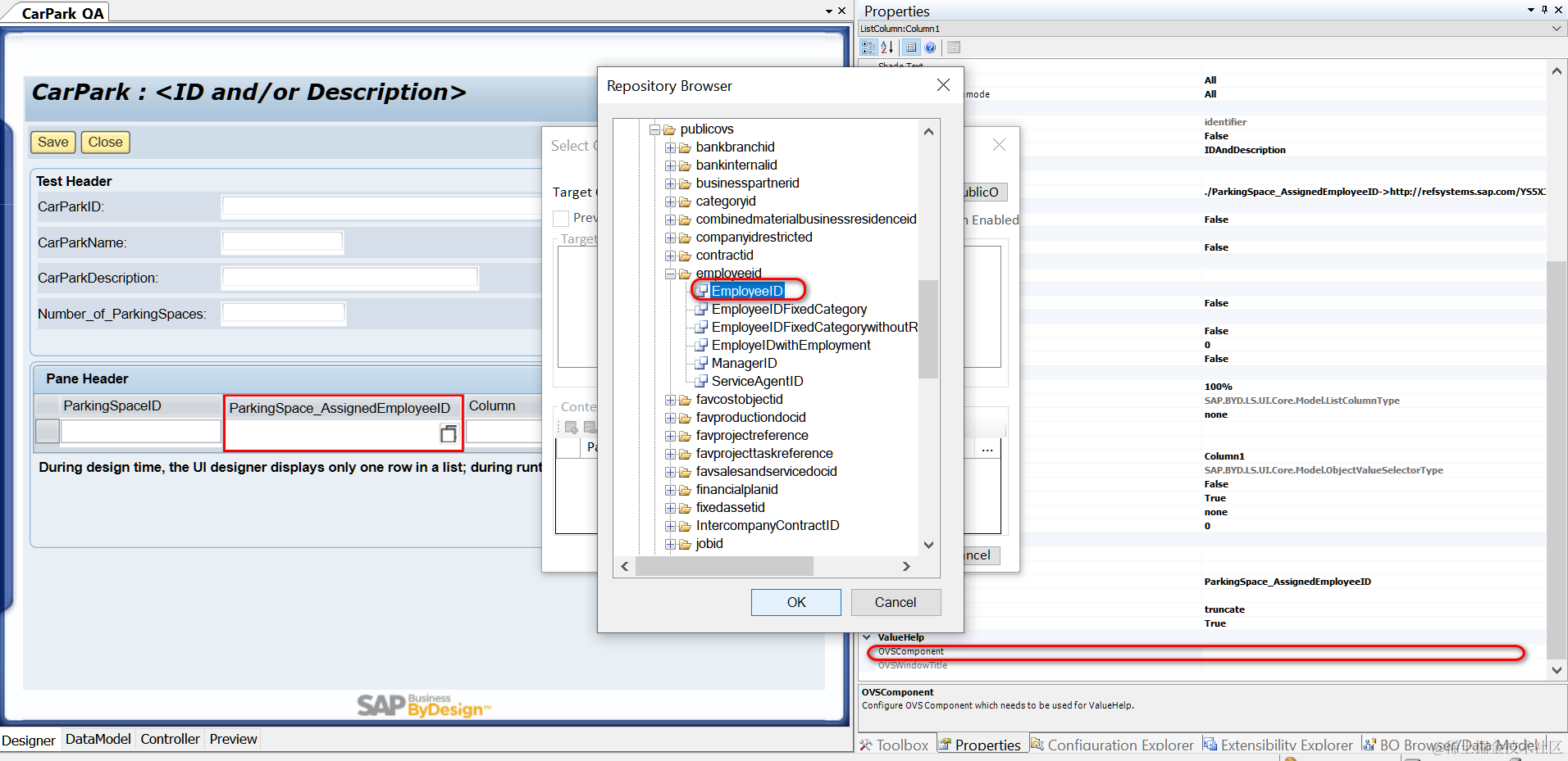 显示employee ID的字段默认是input field,需要将其改成value help: