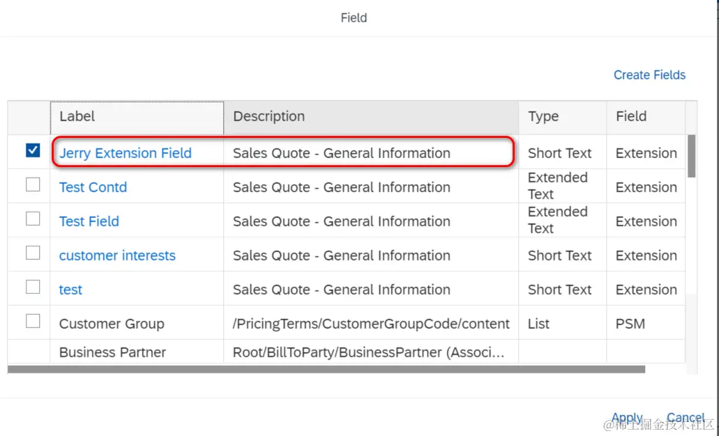 这里会显示一个表格,罗列了系统当前创建的所有extension field. 点击Create Fields: