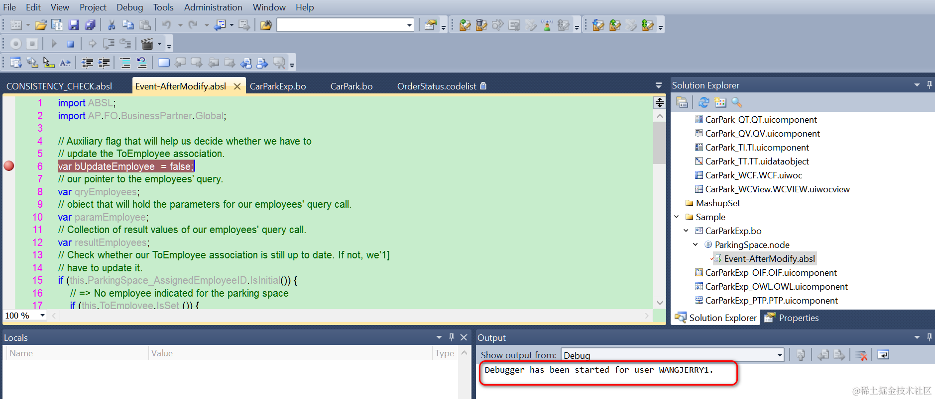 Debugger has been started for user WANGJERRY1: