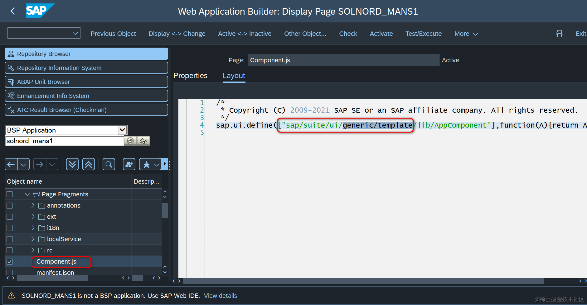 SE80 打开 solnord_mans1, 发现它不仅是一个 SAP UI5 应用,而且是一个基于 Fiori Elements 的 UI5 应用。