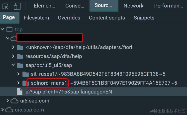 如果在 Source 标签页里的 sap/bc/ui5_ui5/sap 文件夹下发现新出现了子文件夹,则说明该应用是 SAP UI5 原生应用,且应用名称就是子文件夹的名称,例如下图的 solnord_mans1.