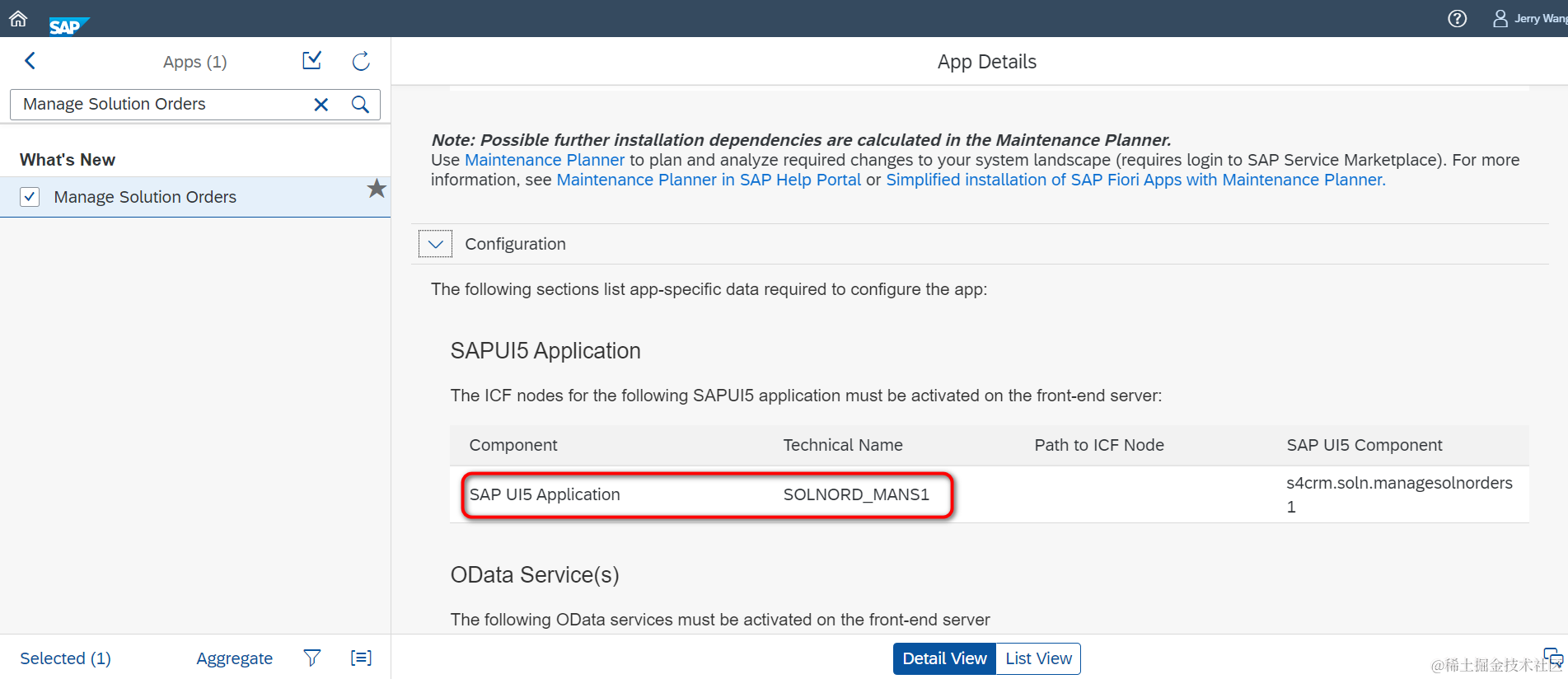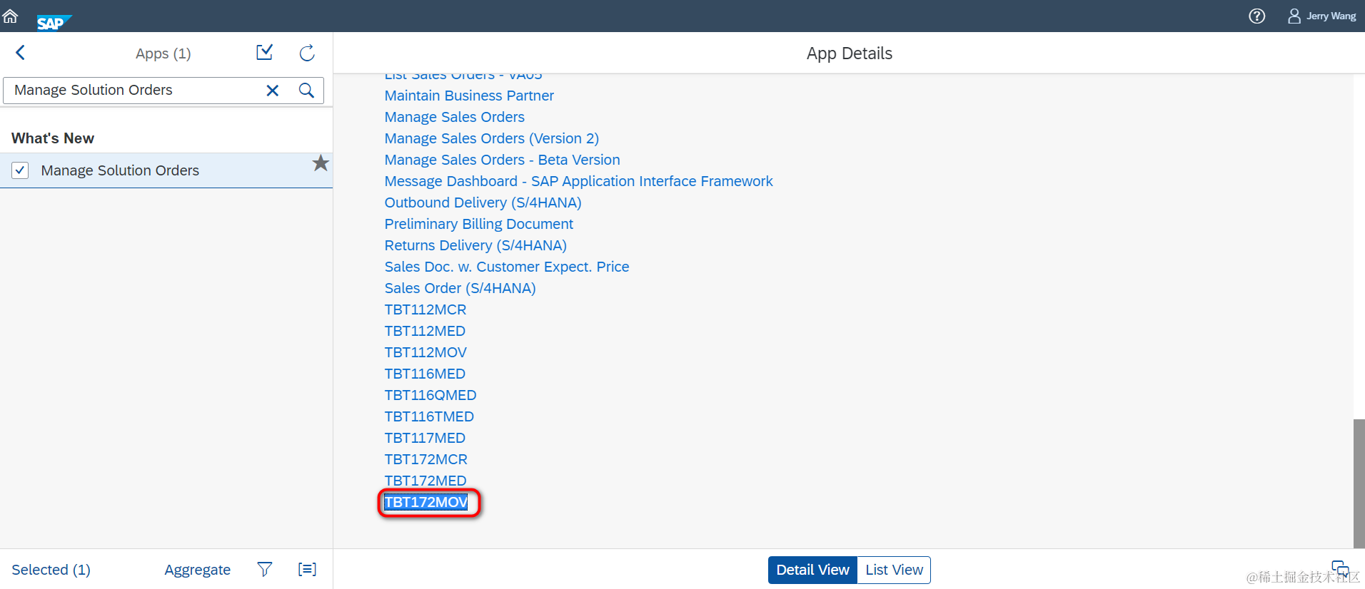 这里一目了然,Manage Solution Orders 的入口,是一个 SAP UI5 应用,名称为SOLNORD_MANS1, 这正好和我们方法1里查找到的名称一致。
