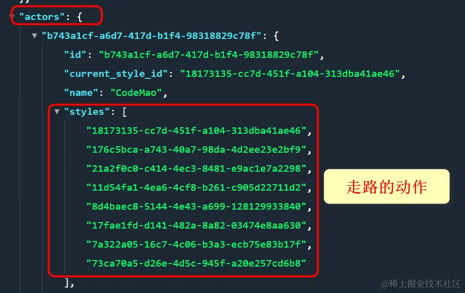 style节点里包含actors 动作的静态截图,cdn_url和base64 encode之后的代码: