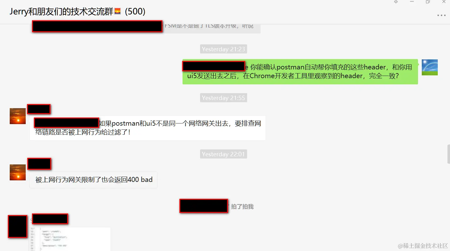 你能确认postman自动帮你填充的这些header,和你用ui5发送出去之后,在Chrome开发者工具里观察到的header,完全一致?