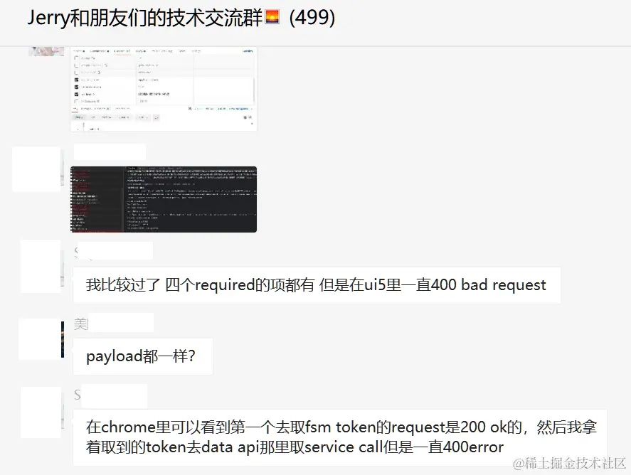 在chrome里可以看到第一个去取fsm token的request是200 ok的,然后我拿着取到的token去data api那里取service call但是一直400error