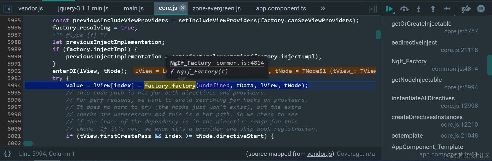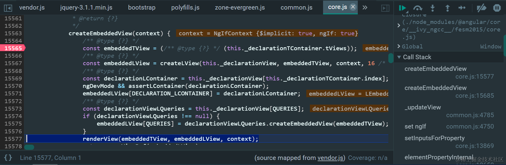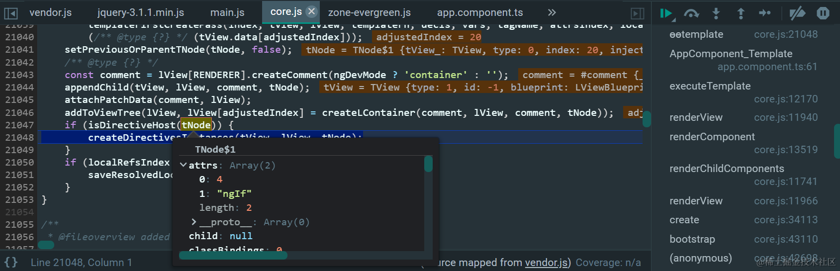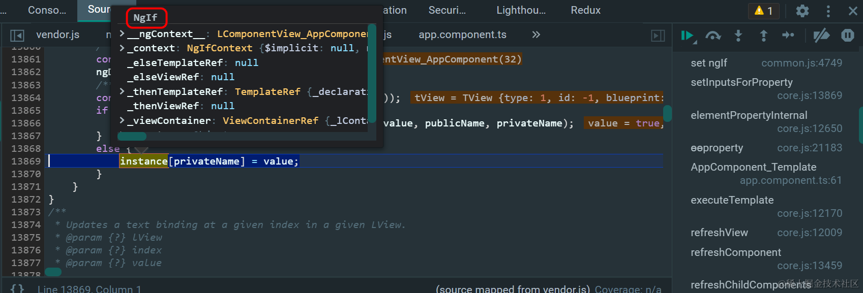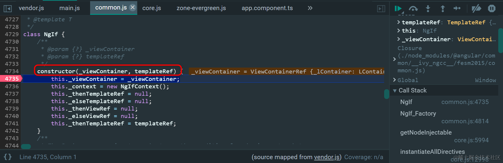检测到一个节点具有ngIf的Directive,因此执行createDirectivesInstances: