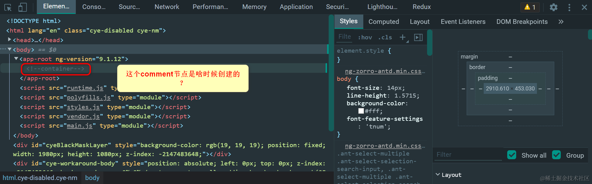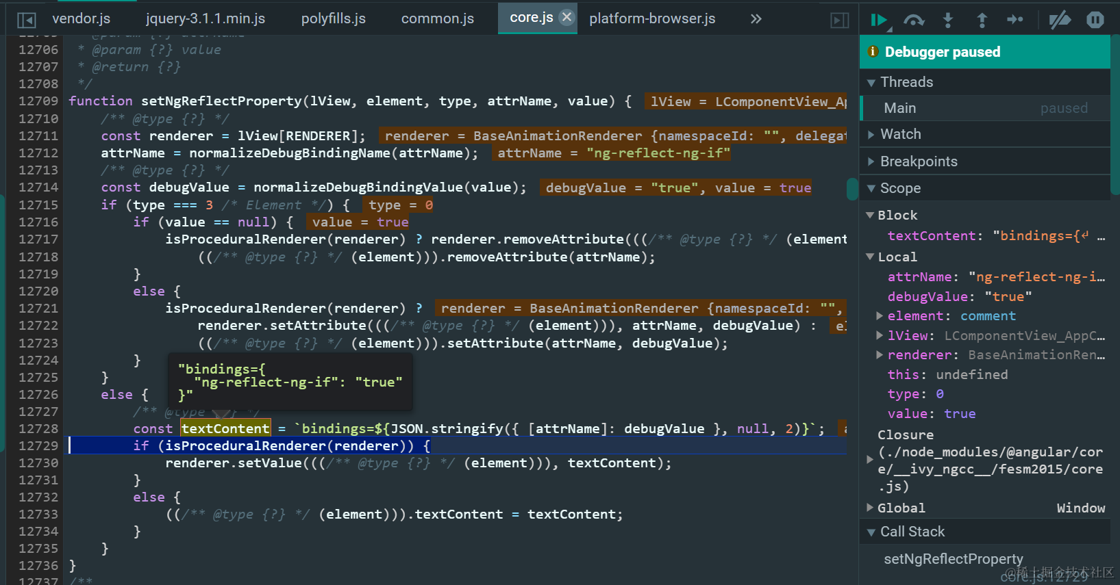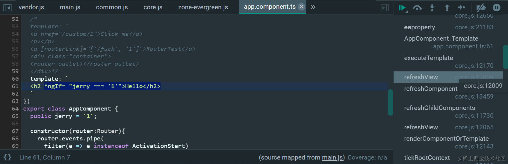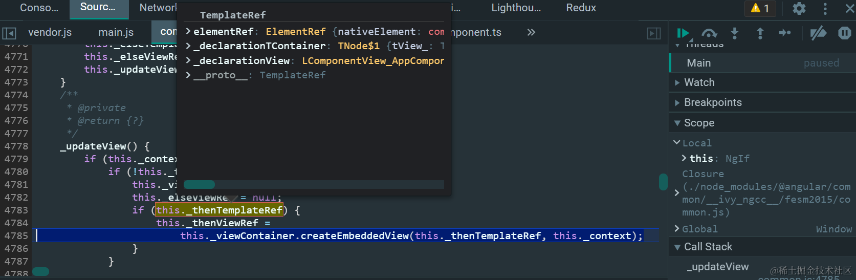 检测到一个节点具有ngIf的Directive,因此执行createDirectivesInstances:
