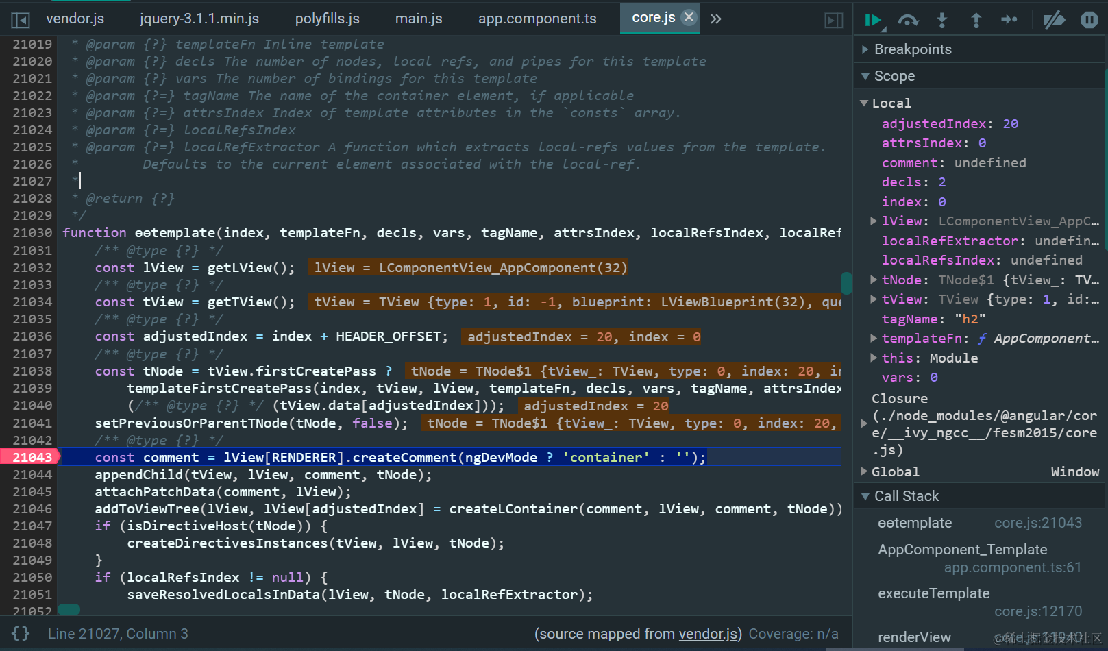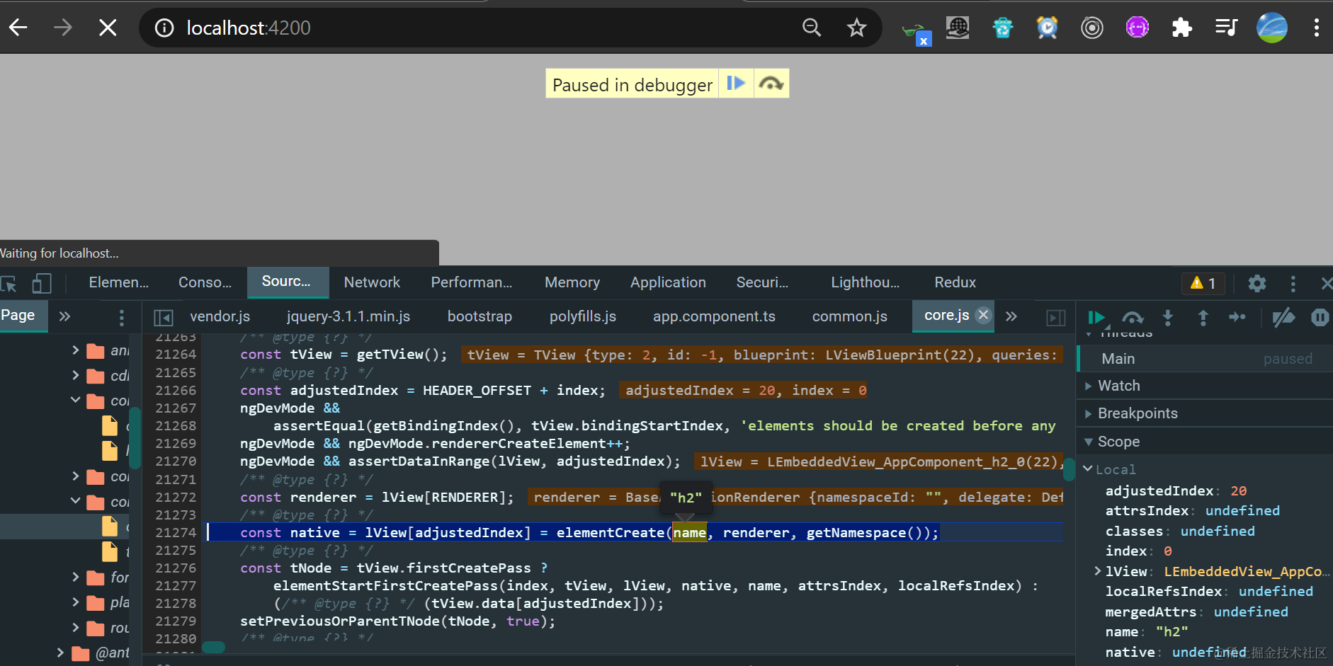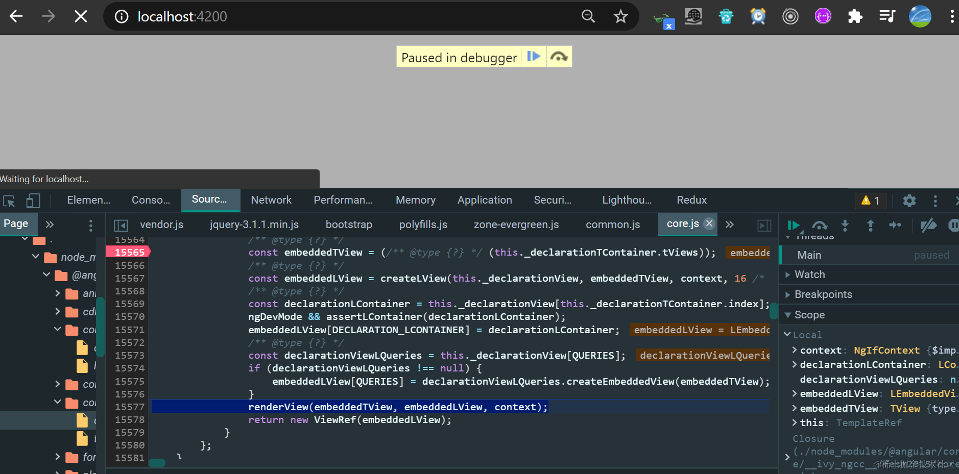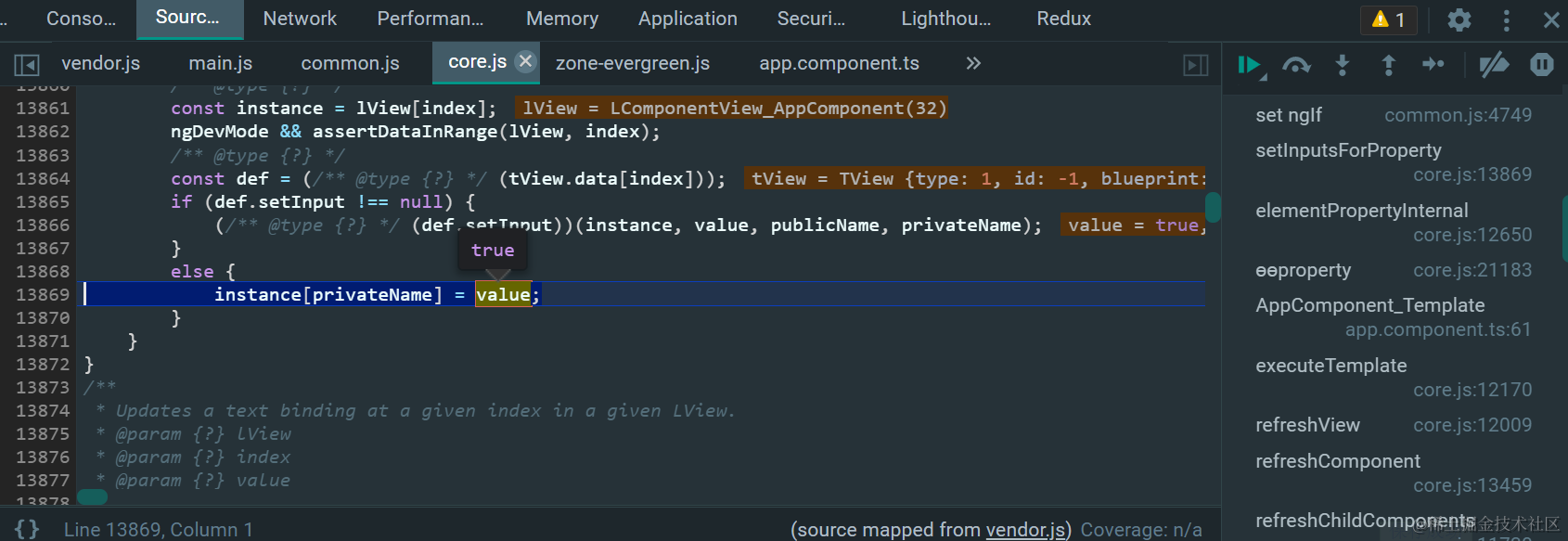 检测到一个节点具有ngIf的Directive,因此执行createDirectivesInstances:
