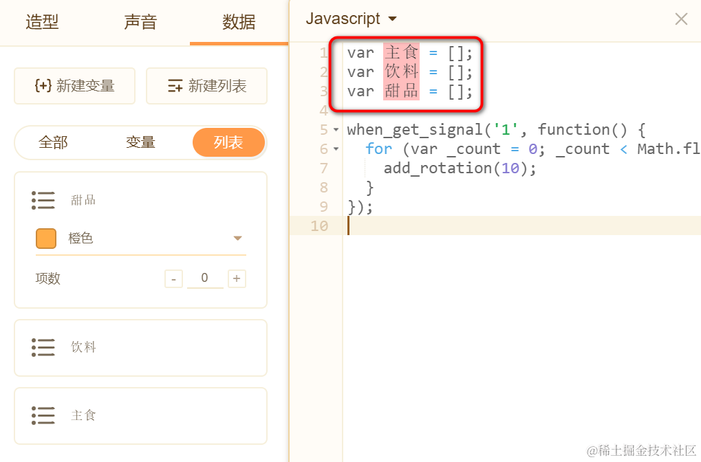 var 饮料 = [];