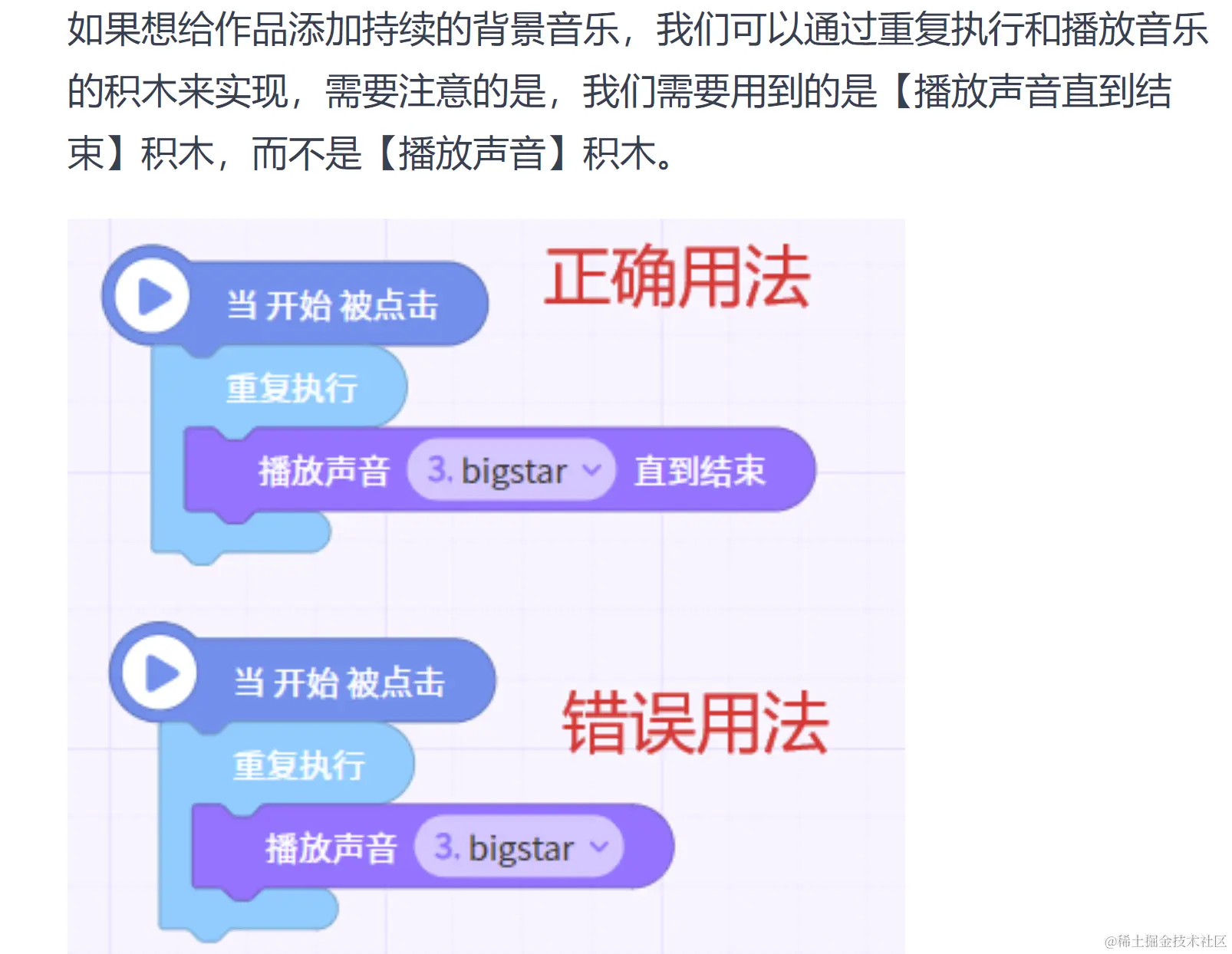 这两块声音积木之间的使用差异: