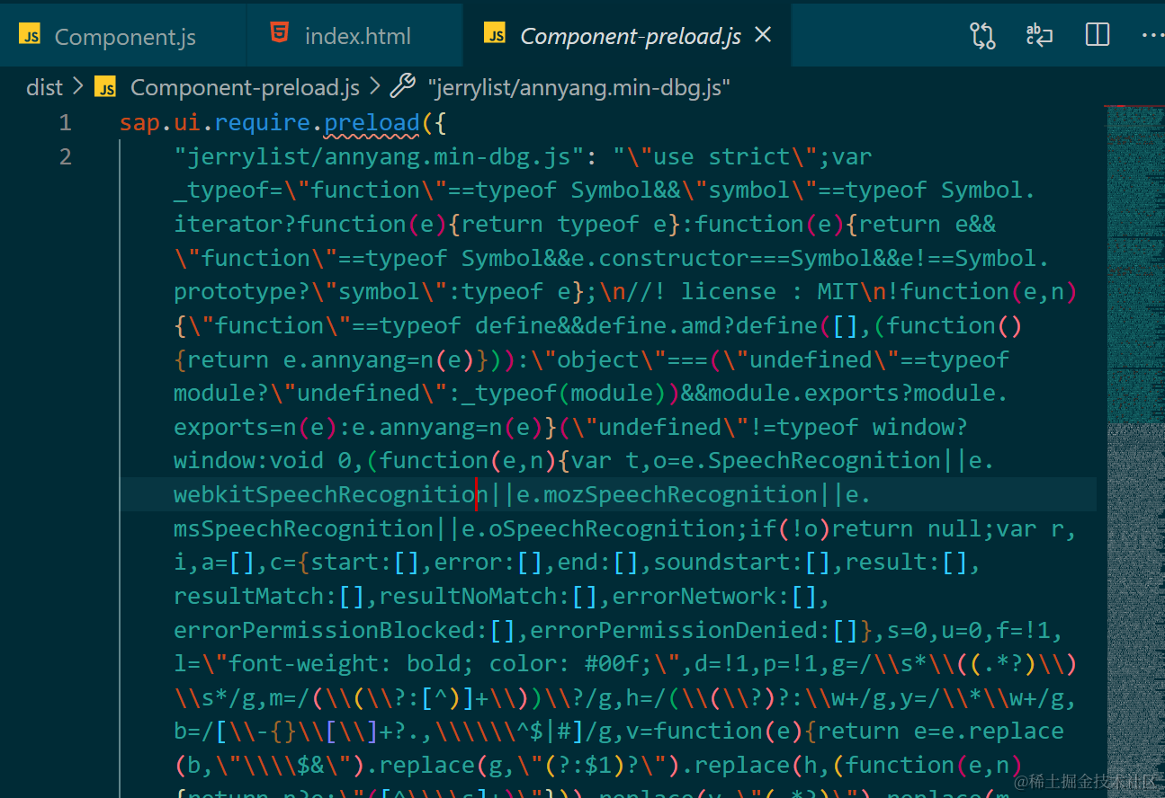 Component-preload.js绝不是简单地将SAP UI5项目工程里各个文件的内容单纯地拼接出来。在内容拼接基础上,还施加了Minification和Ugification的过程。