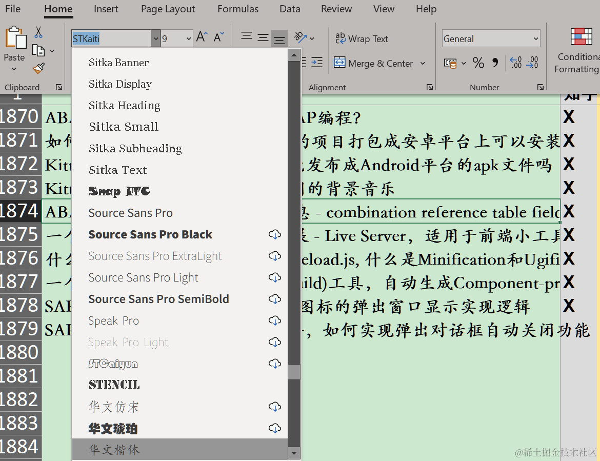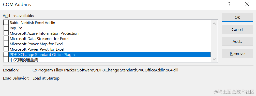 关闭excel多余的addin,提供excel启动速度 已注销 2021-04-26 334 阅读1分钟 我的excel用了一段时间之后,启动速度越来越慢了。今天偶然间发现,工具栏里多了 PDF-XChange和百度网盘这两个选项: 在excel options里,打开 COM Add-in 的编辑菜单: 将对应COM Add-ins前面的勾去掉即可: 工具栏上多余的选项消失了: 另外我的excel里,中文显示效果也怪怪的,比如下图 “自动关闭” 这几个字,因为字体设置不正确: 换了一个华文楷体 字体后,看起来舒服多了: 更多Jerry的原创文章,尽在:“汪子熙”: