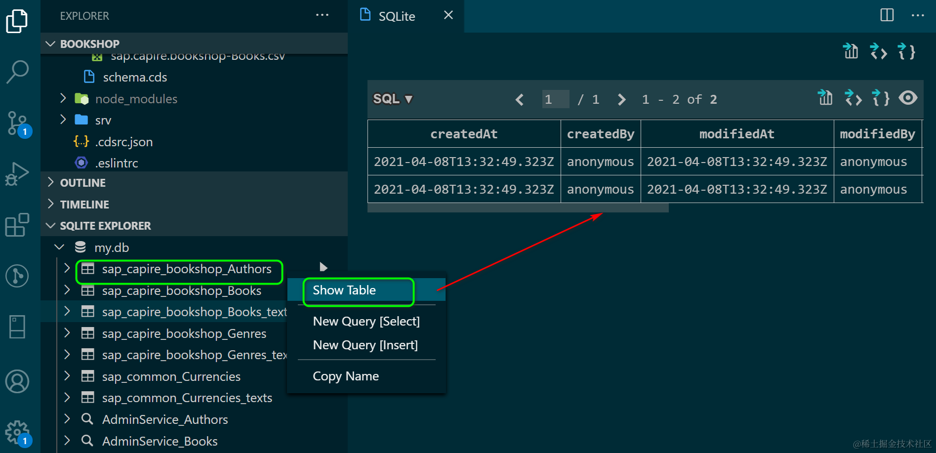 右键菜单里选择 Show Table,即可查看指定数据库表里的内容: