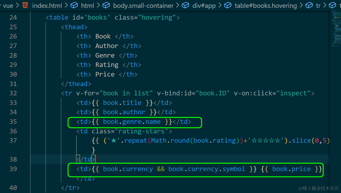 而最后 Vue 页面,需要显示 genre结构的name字段: