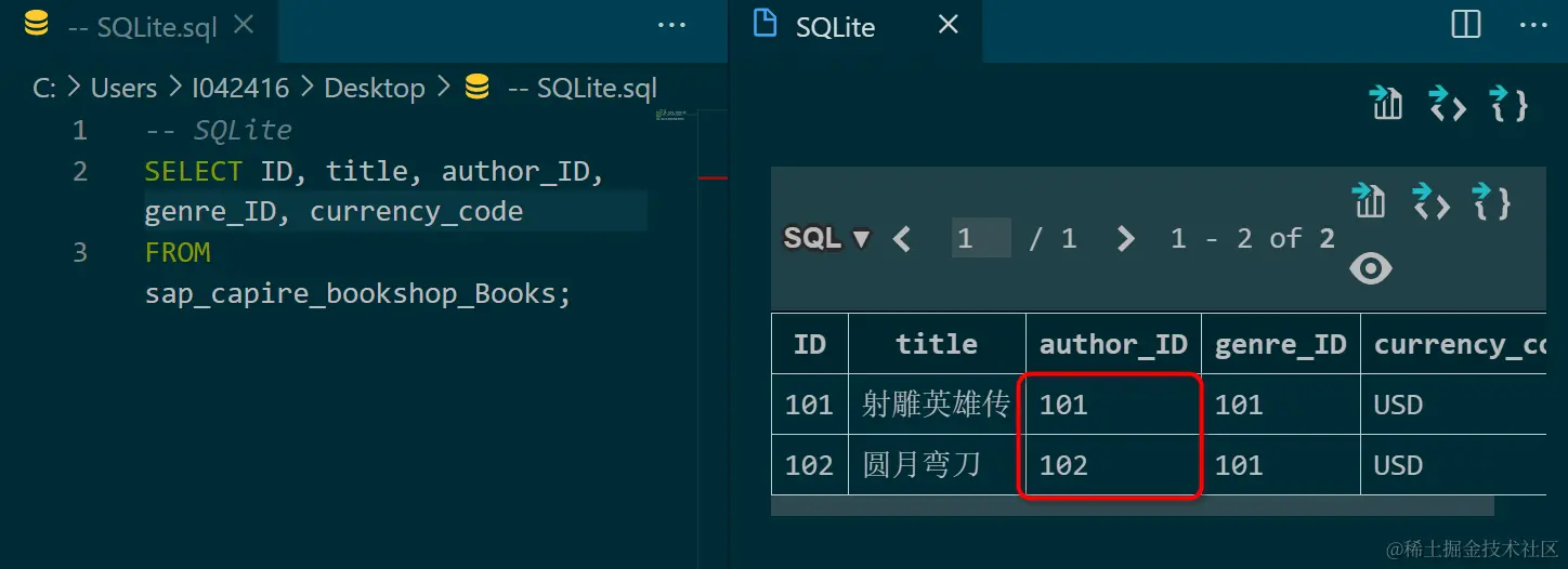 这里的 Books 数据库表字段 author_id, 相当于 ABAP 数据库表里的 foreign key.