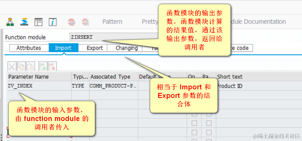 - ABAP subroutine 的参数类型只支持 using 和 changing 两种,而 function module 的参数类型则丰富得多。