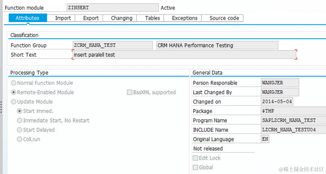 注意, function module 必须从属于某一个 function group,后者可以理解成存放 function module 的一个容器。因此在创建新的 function module 之前,我们首先需要创建一个 functio