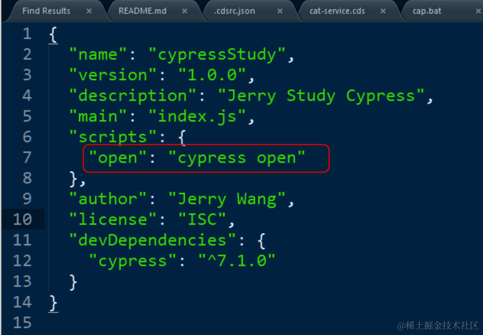 编辑package.json,添加如下的 json 语句: