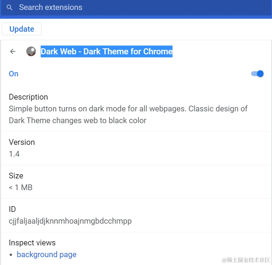 这个扩展的名称叫做 Dark Web - Dark Theme for Chrome