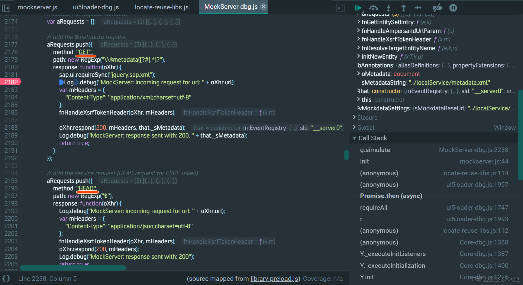 接下来,是 mockserver 为不同类型的 HTTP 请求,注册不同的 handler. 这样,当 mock server 收到 SAP Fiori Elements 应用发起的 HTTP 请求时,这些 handler 会被调用,来返回 mock 过的数据。
